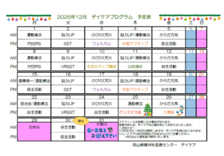岡山県精神科医療センター12月デイケアプログラムのお知らせ