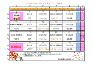 岡山県精神科医療センター11月デイケアプログラムのお知らせ