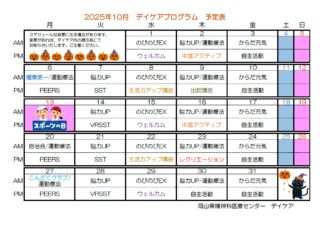 岡山県精神科医療センター10月デイケアプログラムのお知らせ